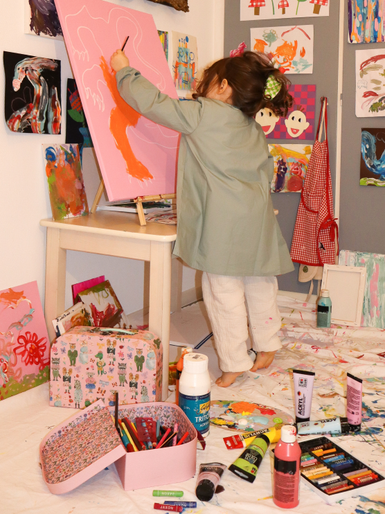 There’s always space for creativity and play in our home. Apollonia has her own little atelier in my studio where she can paint, craft, and get as messy as she likes. She’s naturally imaginative - I don’t need to encourage her. She’s in there every day, making art for us and others. Her paintings are all over our home, and they’re my favorite decorations.
