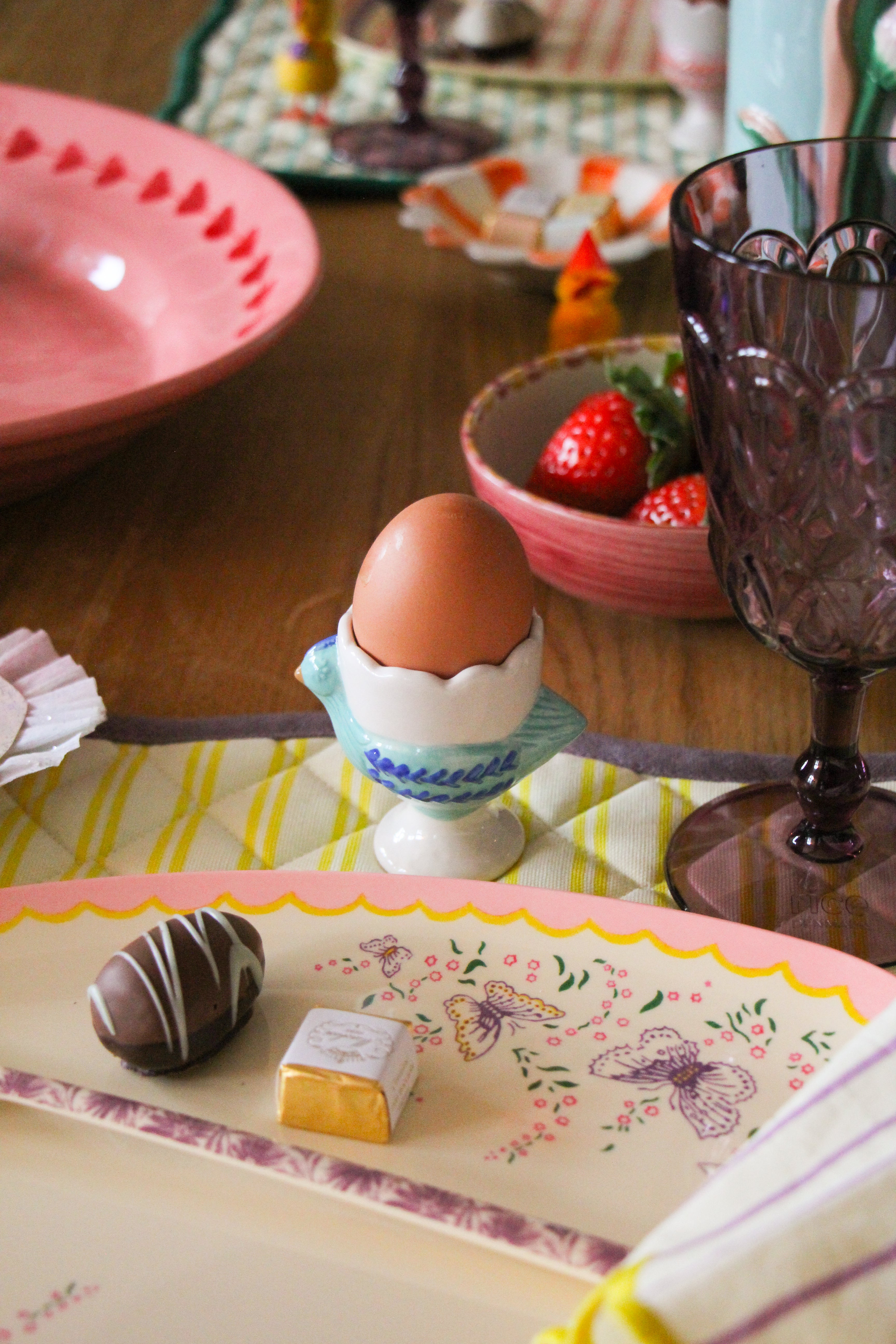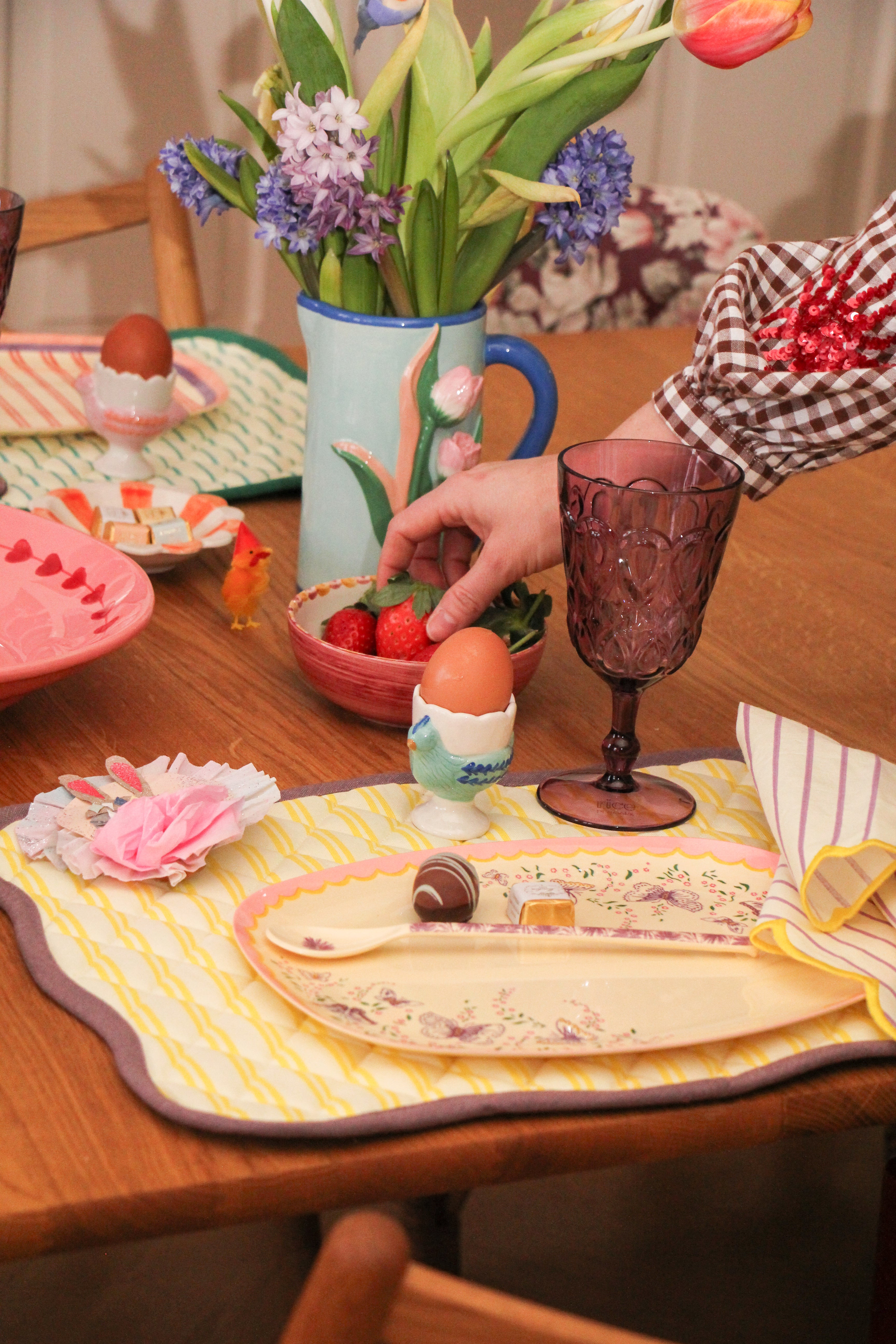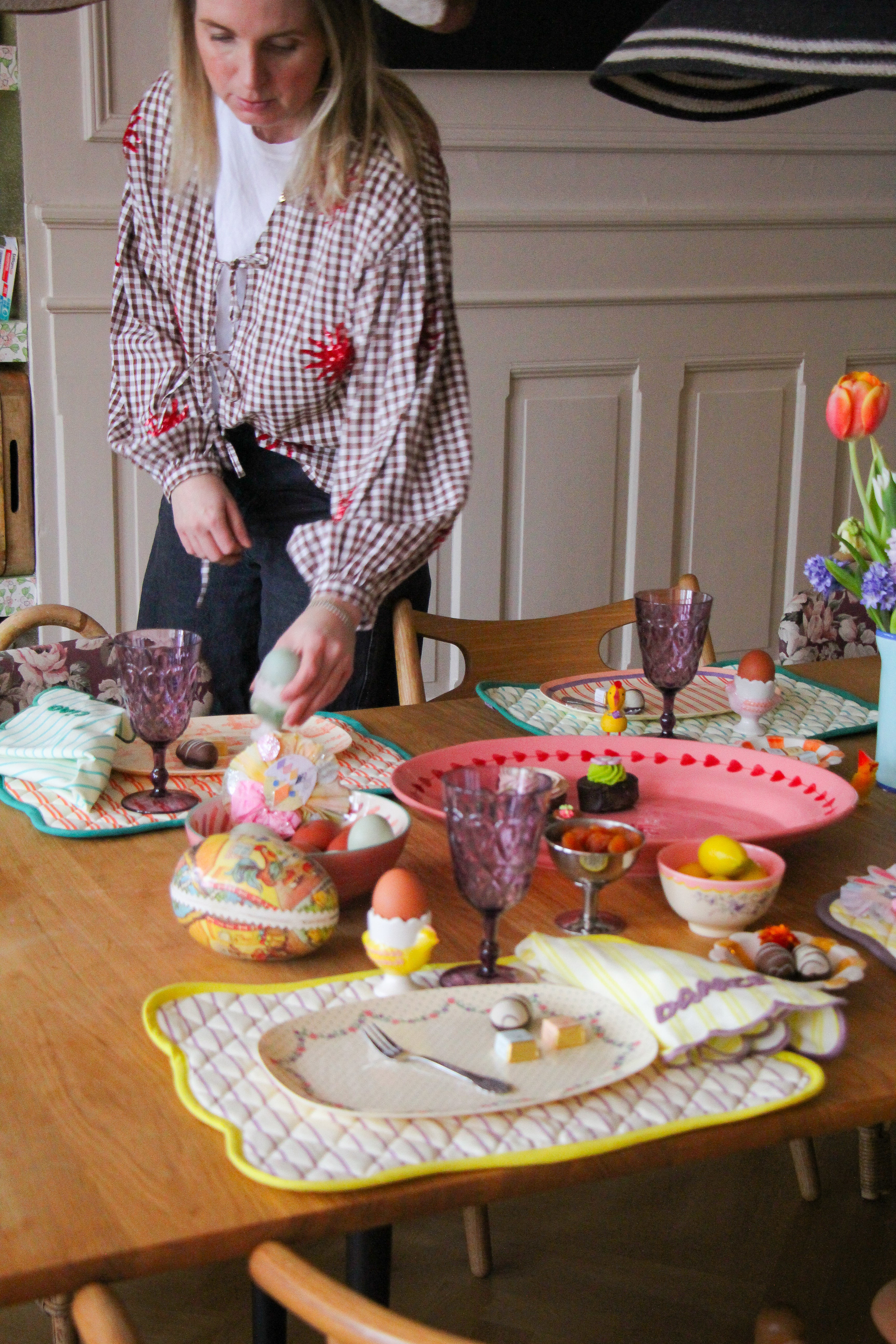 Complete your Easter table setting with charming Easter decoration. Add small details like decorative eggs and playful elements that bring warmth and personality to the table. The right Easter decoration or fresh flowers adds the final touch and makes your Easter table inviting for both kids and adults.